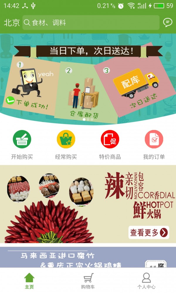 锅否食材app是一款网络购物应用,锅否食材app为用户打造一个火锅食材采购平台,方便火锅店通过软件轻松采购食材,方便实惠。