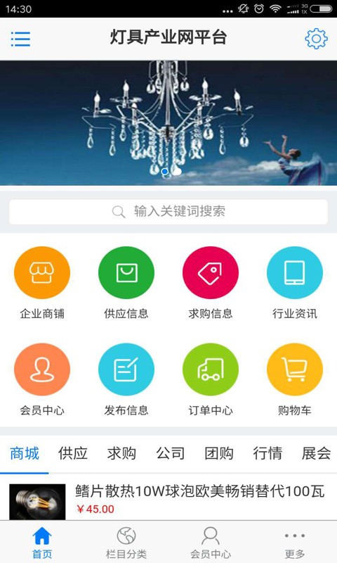 灯具产业网平台app是一款网络购物应用,灯具产业网平台app为用户打造一个灯具行业购物平台,方便用户轻松采购各类灯具产品,方便实惠。