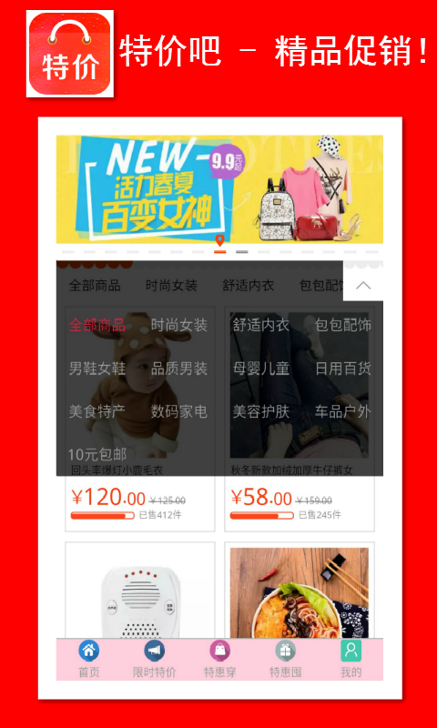 特价吧.手机必备APP!低价折扣,包邮妥妥滴。打造更快捷更实惠的购物方式,更加惊喜购物体验,男装,女装,时尚饰品,居家用品特卖会,动动手指就能送到您家。