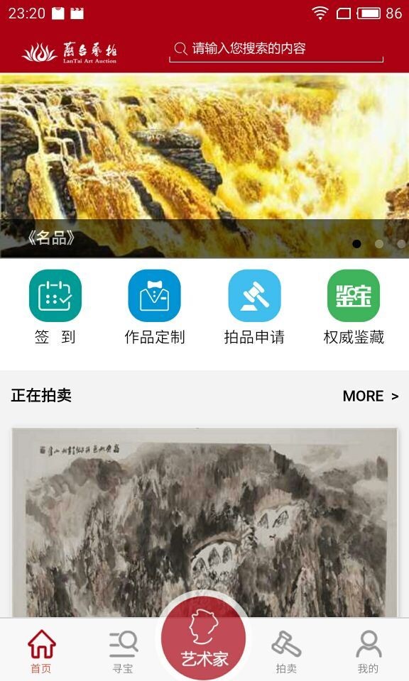 兰台艺拍app是一款艺术品网拍软件,兰台艺拍app为用户提供大量名人字画作品,用户可以通过软件鉴定作品真伪,在线拍卖作品。