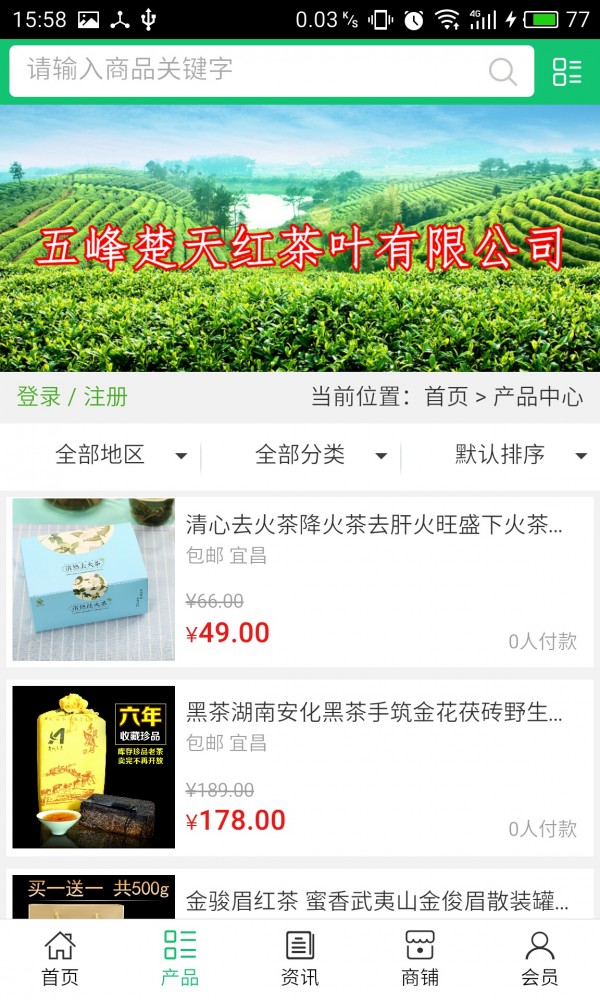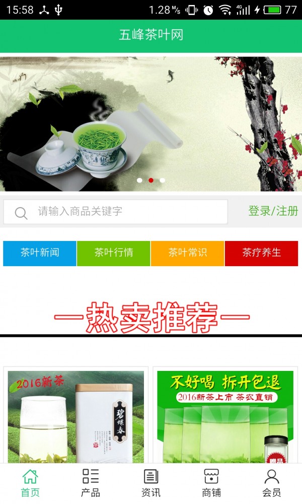 五峰茶叶网app不仅具备购物、查询订单、搜索商品、行业资讯和产品评价等长用功能,而且还实现了手机版特有的会员注册陆、广告位、招商开店等功能。