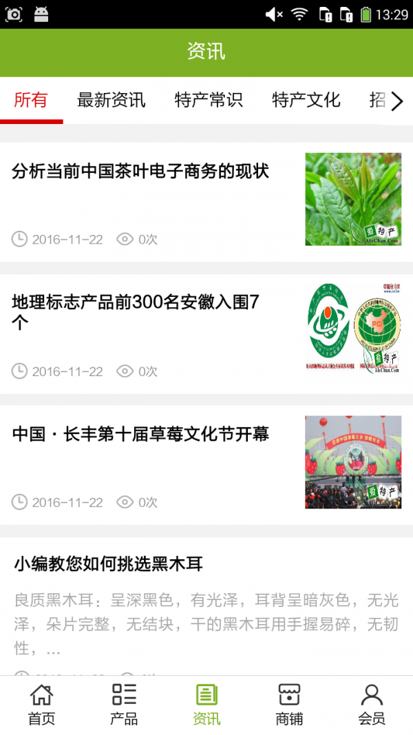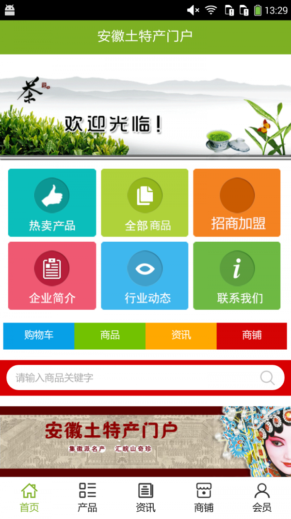 安徽土特产门户app不仅具备购物、查询订单、搜索商品、行业资讯和产品评价等常用功能,而且还实现了手机版特有的会员注册登录、广告位、招商开店等功能。