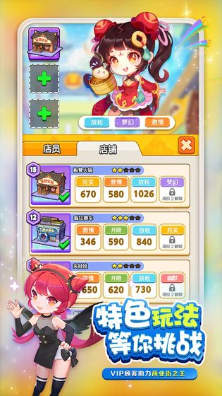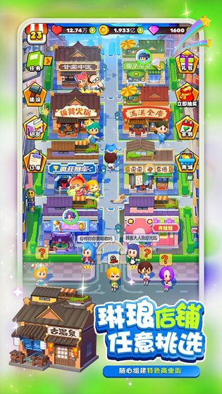 梦幻商业街破解版中有着丰富的经营方式,趣味的经营道具可以增加玩家的挑战,玩家需要利用多种不同的方式快速的发展自己的商店,通过逐步的发展扩大自己的店面和经营范围,将整个商业街全部涵盖其中成为名副其实的商业街大亨。