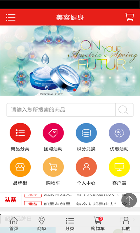 美容健身是一款实用信息平台,集商城、品牌街、积分兑换、优惠活动团购活动和热卖等功能于一体,真实、高效地让您生活更简单!