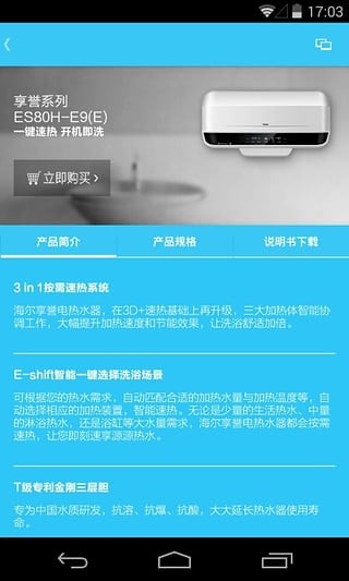 海尔热水器app是一款帮助您解决用水问题的客户端应用,海尔热水器满足您的全套用水需求,根据专家提供的解决方案,在线一键购齐用水社保,并且提供安装指导,非常的实用。