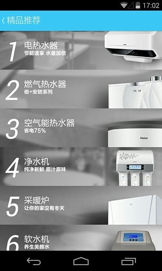 精品推荐:官方推荐,抢先了解明星产品,包括热水器,采暖炉、净水机,软水机产品