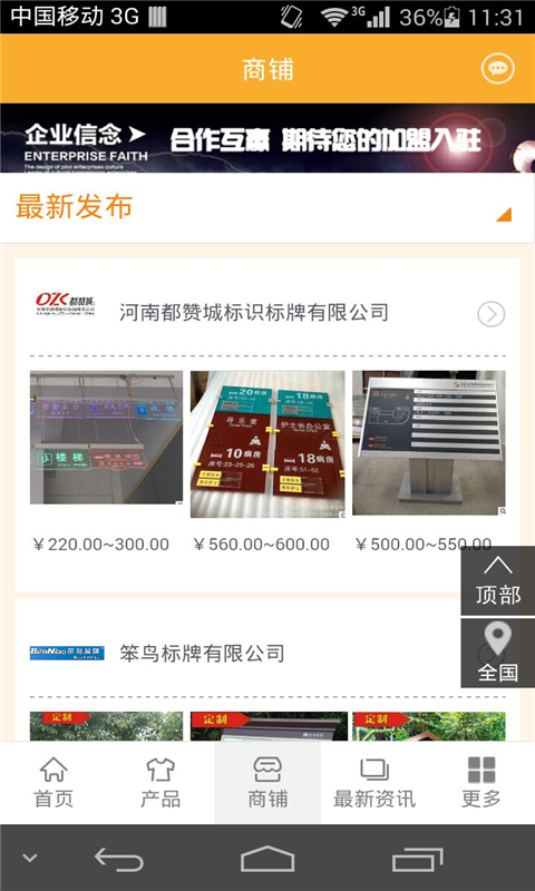 广告装饰市场app是一款网络购物应用,在广告装饰市场app这里你不但可在线选购商品,还能便捷的查阅产品信息,了解企业详情和行业资讯等。