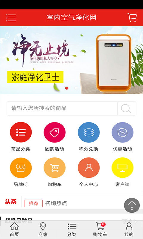 净化商城app是一款网络购物应用,通过净化商城app你可查阅品牌信息,了解产品详情,以及在线选购商品,参与团购活动等。