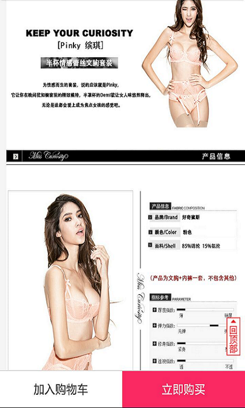 聚爱美内衣 通过内衣设计师和内衣买手团队导购服务,通过日志搭配介绍最时尚的内衣时尚,解决平面广告中的过度美化,从设计师角度,为用户从繁多的内衣品牌和款式中,为用户找到适合自身的内衣。