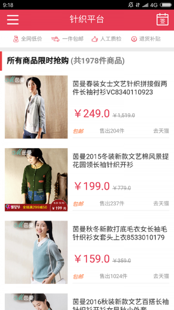 针织平台app是一款网络购物应用,针织平台app为用户打造一个在线购物平台,用户可以在这里获取来自天猫淘宝等电商平台的特惠商品,享受超实惠的在线购物体验。