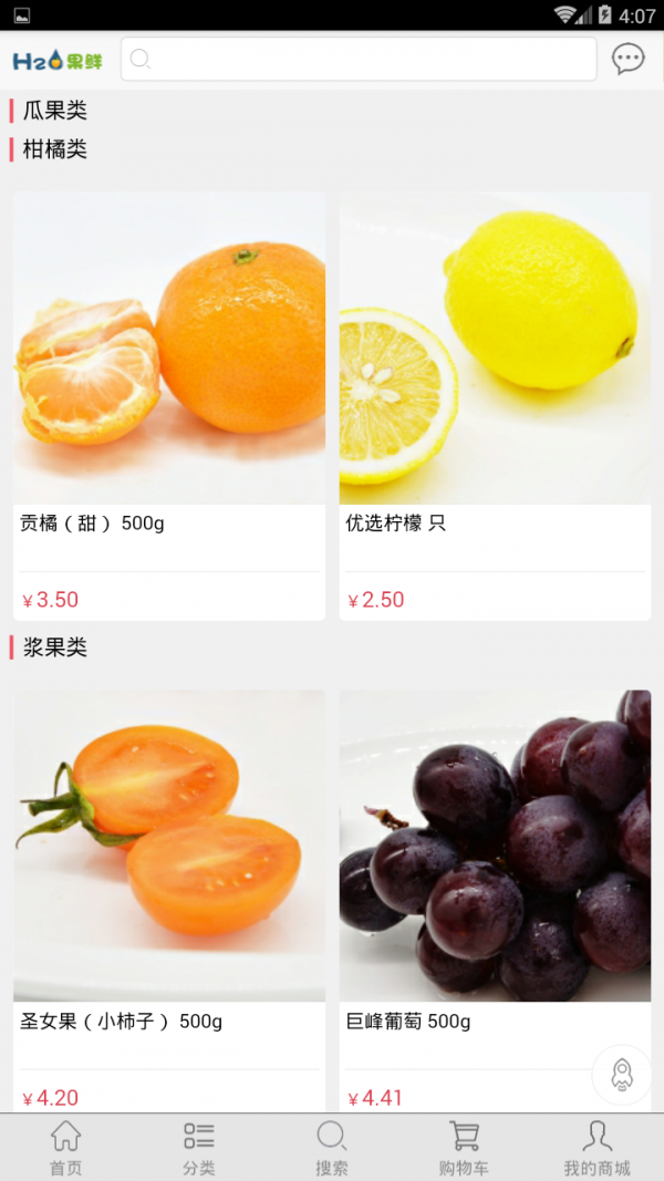 H2O果鲜app是一款网络购物应用,H2O果鲜app为用户打造一个鲜果购物平台,方便用户通过软件了解更多需要的鲜果产品信息,为用户选购鲜果商品提供便利。