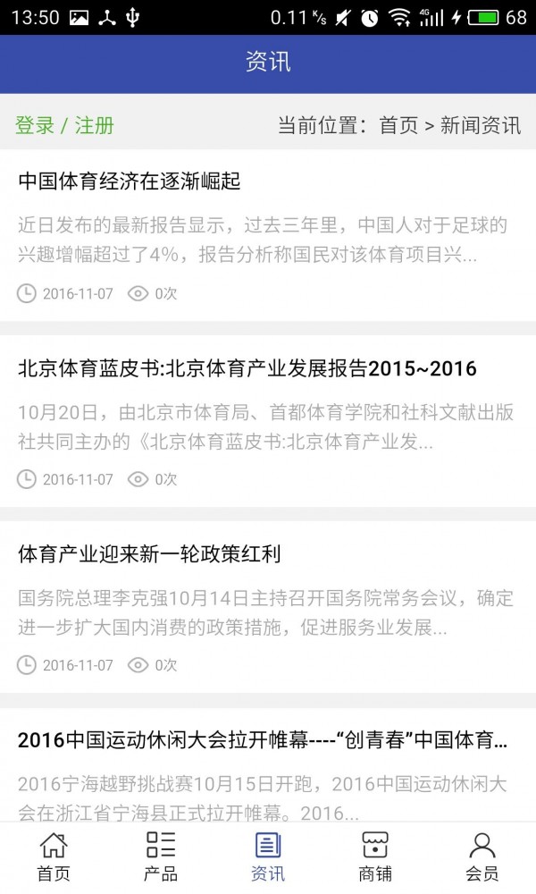 体育工程网客户端不仅具备购物、查询订单、搜索商品、行业资讯和产品评价等常用功能,而且还实现了手机版特有的会员注册登陆、广告位、招商开店等功能。