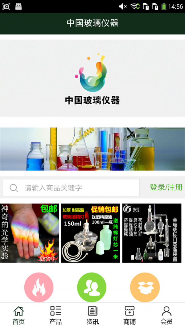 玻璃仪器客户端不仅具备购物、查询订单、搜索商品、行业资讯和产品评价等常用功能,而且还实现了手机版特有的会员注册登录、广告位、招商开店等功能。