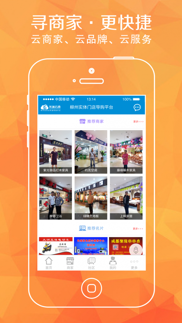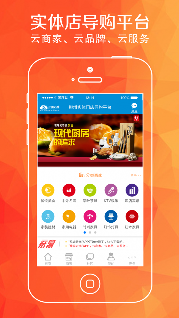 龙城云商app是一款云集商家、云集商品、云集服务的实体店电商平台,一方面,实体商家可通过这个平台管理其电商资源;另一方面,消费者可通过平台获取到商家的所有信息。
