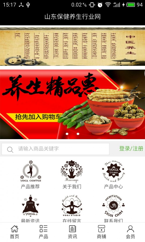 山东保健养生行业网app不仅具备购物、查询订单、搜索商品、行业资讯和产品评价等常用功能,而且还实现了手机版特有的会员注册登陆、广告位、招商开店等功能。