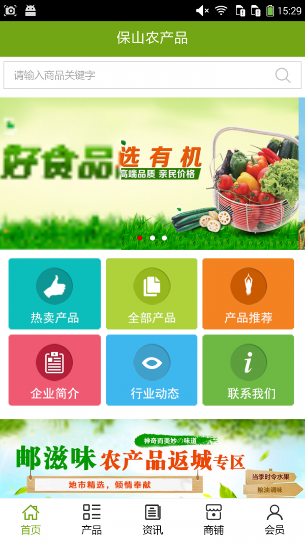 保山农产品app不仅具备购物、查询订单、搜索商品、行业资讯和产品评价等常用功能,而且还实现了手机版特有的会员注册登录、广告位、招商开店等功能。目标是整合当地品牌商、生产商、经销商,为商家和消费者之间提供一站式解决案。欢迎下载使用!