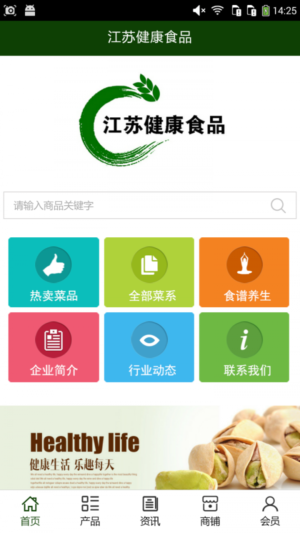 江苏健康食品APP不仅具备购物、查询订单、搜索商品、行业资讯和产品评价等常用功能,而且还实现了手机版特有的会员注册登录、广告位、招商开店等功能。目标是整合当地品牌商、生产商、经销商,为商家和消费者之间提供一站式解决案。