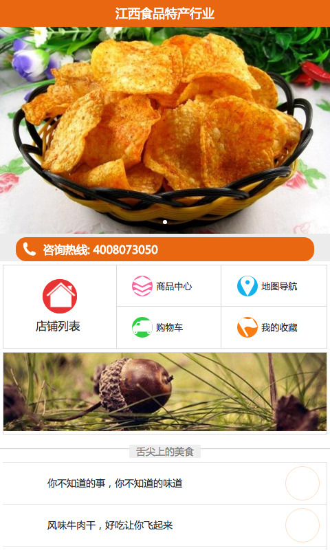 同时平台中也可以浏览各种食品特产行业动态,实现了客户购物、查询订单、搜索商品、行业资讯、产品评价、企业会员注册登录、广告位、招商开店等多种功能。