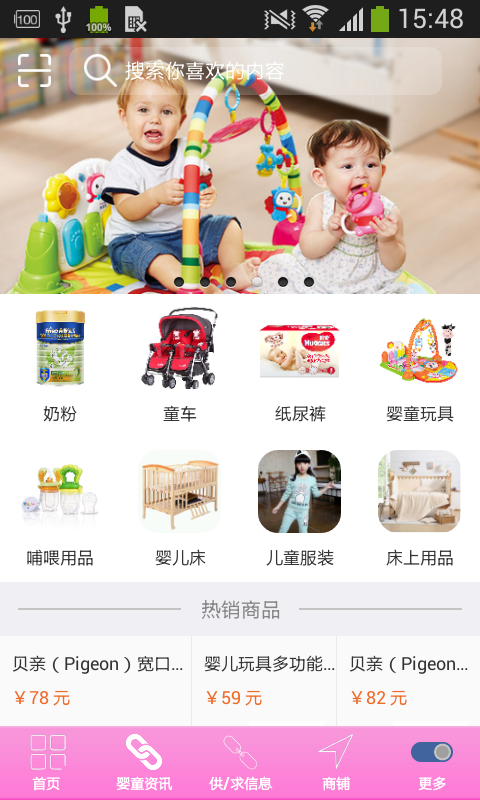 【分类清晰】产品分为奶粉、童车、纸尿裤、婴童玩具、哺喂用品、婴儿床、儿童服装等等;