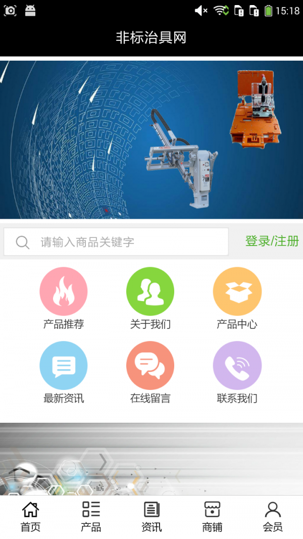 非标治具网客户端不仅具备购物、查询订单、搜索商品、行业资讯和产品评价等常用功能,而且还实现了手机版特有的会员注册登录、广告位、招商开店等功能。