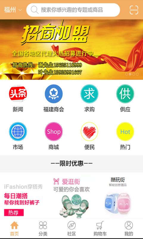 该平台现面向全国招商,各大企业可以在该平台上发布供求信息,发布广告,发布行情,让各大企业及广大客户更为便捷,该平台向广大客户展示了一个大型的福建网移动互联网平台,以便捷的浏览方式,强大的应用功能,最新的应用资讯信息,为广大客户提供了一个丰富的福建网信息平台随时为你更新,让你爱不释手。