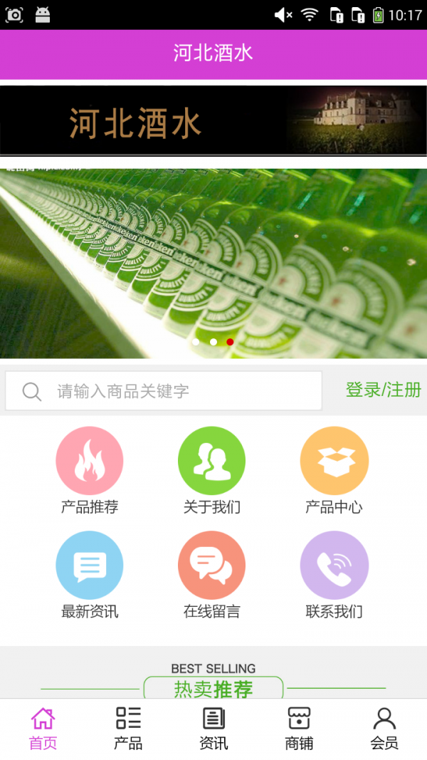 河北酒水app不仅具备购物、查询订单、搜索商品、行业资讯和产品评价等常用功能,而且还实现了手机版特有的会员注册登录、广告位、招商开店等功能。目标是整合当地品牌商、生产商、经销商,为商家和消费者之间提供一站式解决案。欢迎下载使用!