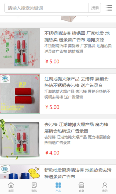 中国地摊货源网客户端缩短了企业与企业之间的距离,用非常直观、便捷的方式、强大的应用功能,提高企业的知名度,促进中国地摊货源网行业人士与社会各界的广泛交流。帮助企业公司和商业人士了解行情,促销产品,把握商机,开拓市场,从而为生产厂家、商家与市场流通之间建立经济、快捷、准确、丰富的专业信息服务及电子商务服务,是中国地摊货源网行业相关人士上网找生意的好帮手!