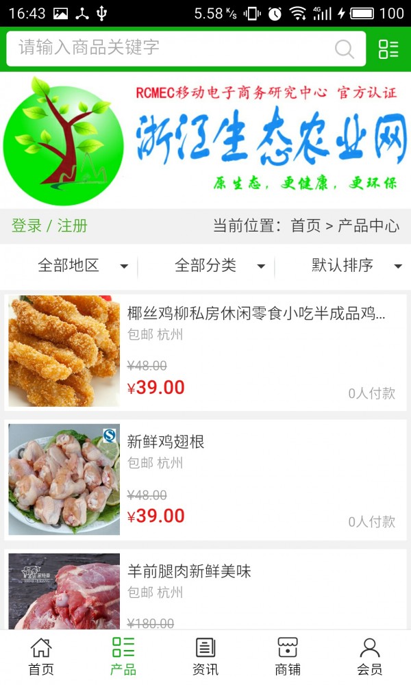 浙江生态农业网APP不仅具备购物、查询订单、搜索商品、行业资讯和产品评价等 长用功能,而且还实现了手机版特有的会员注册登陆、广告位、招商开 店等功能。目标是整合当地品牌商、生产商、经销商,为商家和消费者 之间提供一站式解决方案。