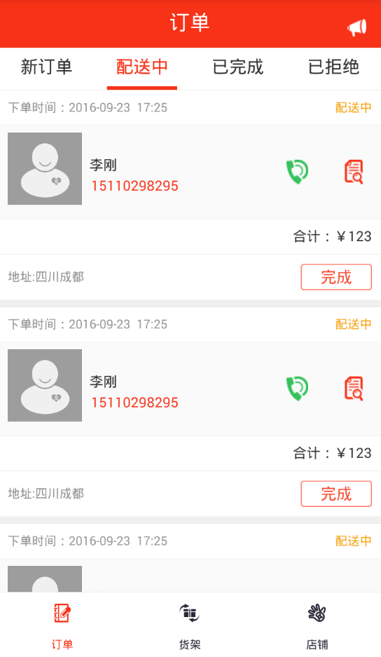 订单操作:可接单,完成订单,联系卖家,查看商品详情 。