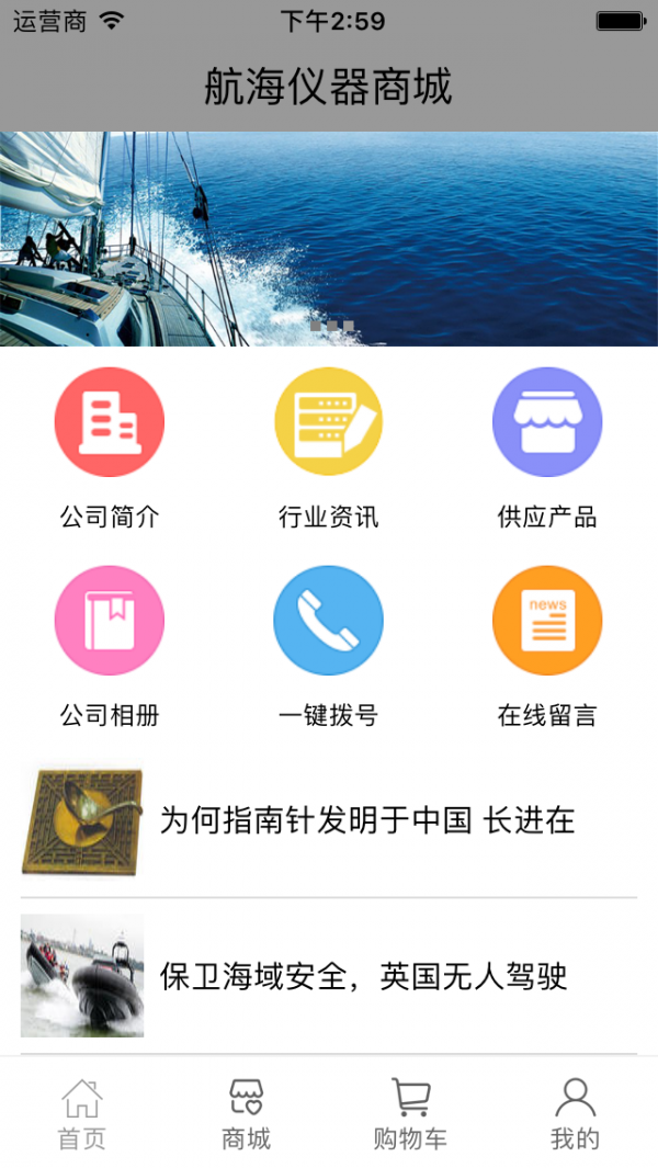 航海仪器商城是一款实用性销售航海仪器的app软件,集最新资讯,最全的产品于一体,打造最专业的综合服务,展示出一个丰富多样的销售航海仪器的软件平台。