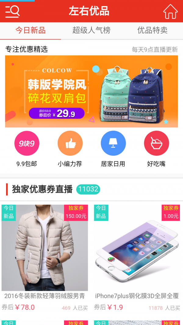左右优品,真便宜!每天10点更新千余款折扣商品,爆款低至9.9,国内优质商品推荐平台!商品云集女装、男装、母婴、居家等品类,9道验货工序严把质量关,便宜一样有好货!特卖导购商城,支持7天无理由退货,给您愉快购物体验!