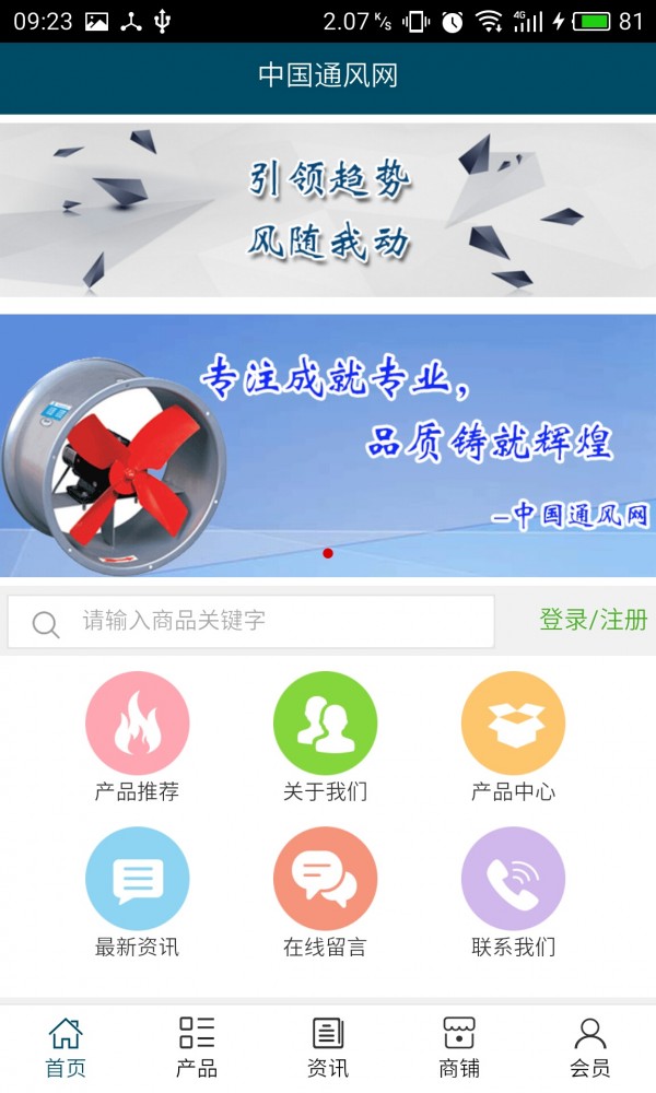 中国通风网APP不仅具备购物、查询订单、搜索商品、行业资讯和产品评价等 长用功能,而且还实现了手机版特有的会员注册登陆、广告位、招商开 店等功能。目标是整合当地品牌商、生产商、经销商,为商家和消费者 之间提供一站式解决方案。