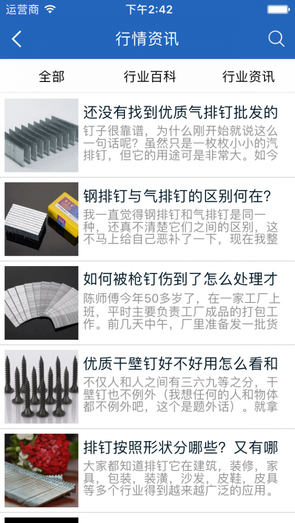 枪钉商城app是枪钉行业的客户端。您可以查阅到海量精选有关不锈钢的行业动态、产品详情、供求信息等。该客户端面向全国招商,各大企业可在该客户端上发布供求信息,发布广告,让各大企业以及广大客户更为便捷。该客户端向广大客户展示了一个大型的枪钉行业移动互联网平台,以便捷的浏览方式、强大的应用功能,为广大客户展开了一个丰富的枪钉行业平台,时时刻刻的为您更新,让您爱不释手。