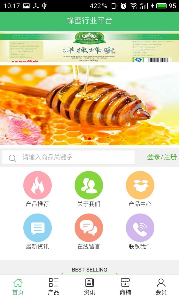 蜂蜜行业平台app不仅具备购物、查询订单、搜索商品、行业资讯和产品评价等常用功能,而且还实现了手机版特有的会员注册登陆、广告位、招商开店等功能。