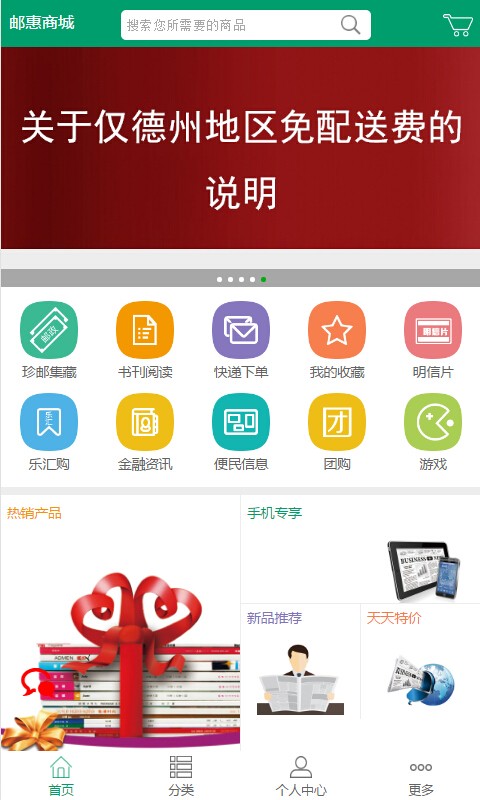 邮惠商城app是一款电商购物应用,邮惠商城app为用户打造一个网上购物平台,用户可以在这里轻松选购各类邮政商品,为用户集邮提供方便。