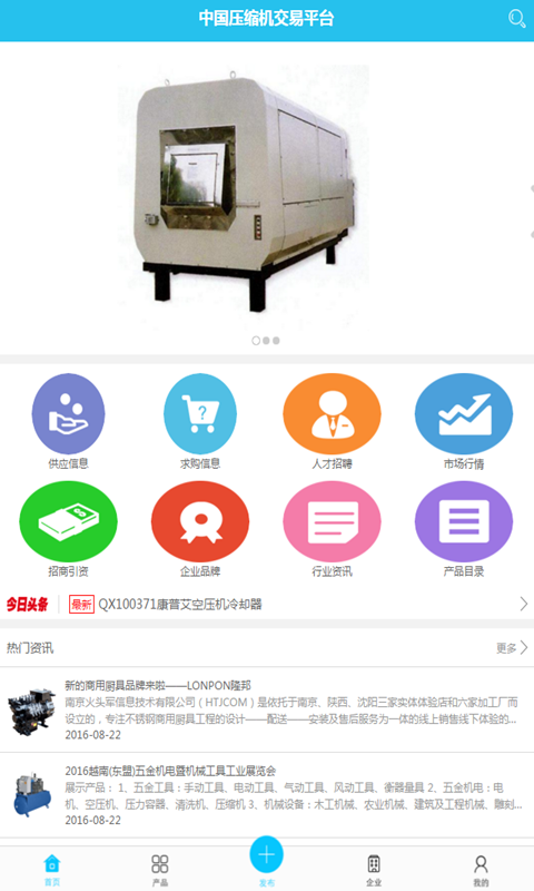 中国压缩机交易平台app可帮助企业公司和商业人士了解行情,促销产品,把握商机,开拓市场,从而为生产厂家、商家与市场流通之间建立经济、快捷、准确、丰富的专业信息服务及电子商务服务,是中国压缩机交易平台行业相关人士上网找生意的好帮手!