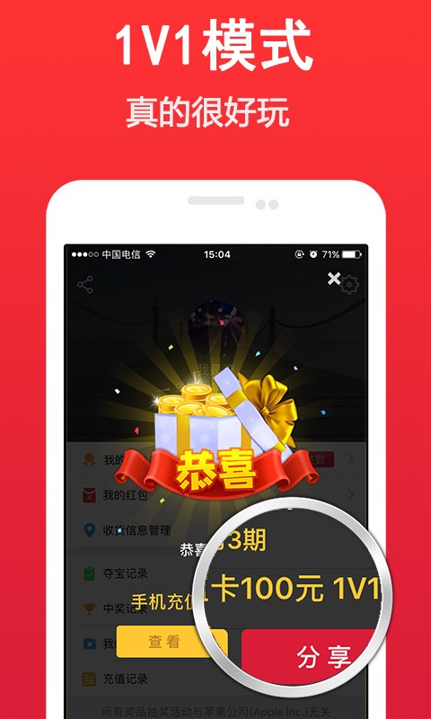 每个奖品分配对应数量的号码,每个号码价值1个夺宝币,当一件奖品所有号码售出后,根据既定的规则计算出一个幸运号码,持有该号码的用户,直接获得该奖品。