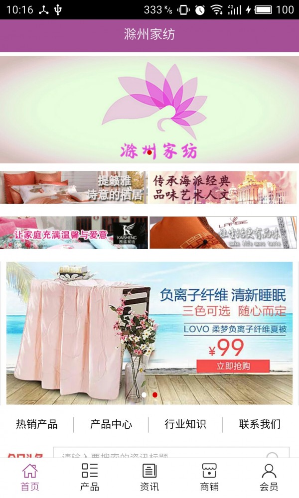 滁州家纺app是一款专注于床上用品在线购买的软件,通过滁州家纺app你可以便捷的购买到自己需要的产品,同时了解更多信息。