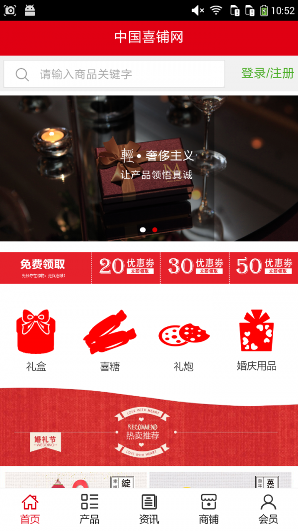 喜铺网app不仅具备购物、查询订单、搜索商品、行业资讯和产品评价等常用功能,而且还实现了手机版特有的会员注册登录、广告位、招商开店等功能。目标是整合当地品牌商、生产商、经销商,为商家和消费者之间提供一站式解决案。欢迎下载使用!