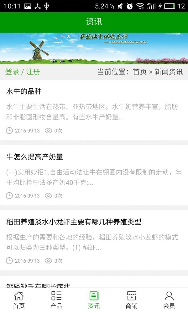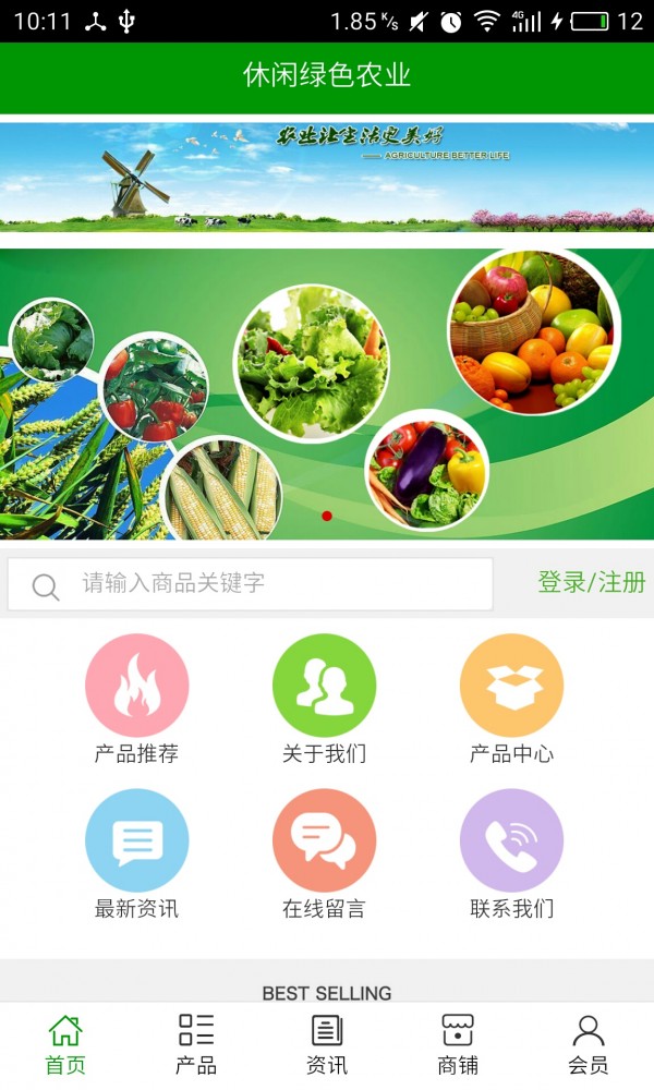 休闲绿色农业客户端不仅具备购物、查询订单、搜索商品、行业资讯和产品评价等常用功能,而且还实现了手机版特有的会员注册登陆、广告位、招商开店等功能。