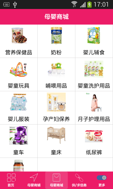 【母婴商城】:本应用提供相关各种产品分类,方便客户查询购买。
