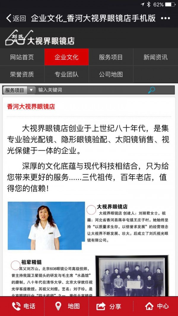 大视界眼镜店创业于上世纪八十年代,是集专业验光配镜、隐形眼镜验配、太阳镜销售、视光保健于一体的企业。