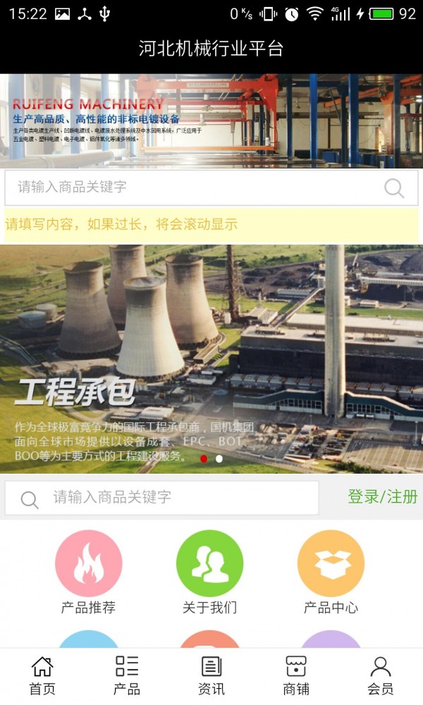 河北机械行业平台app不仅具备购物、查询订单、搜索商品、行业资讯和产品评价等常用功能,而且还实现了手机版特有的会员注册登陆、广告位、招商开店等功能。