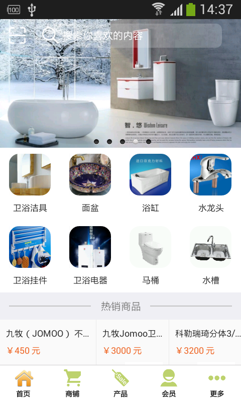 【产品】:九牧商城app提供相关各种产品分类,方便客户查询购买。
