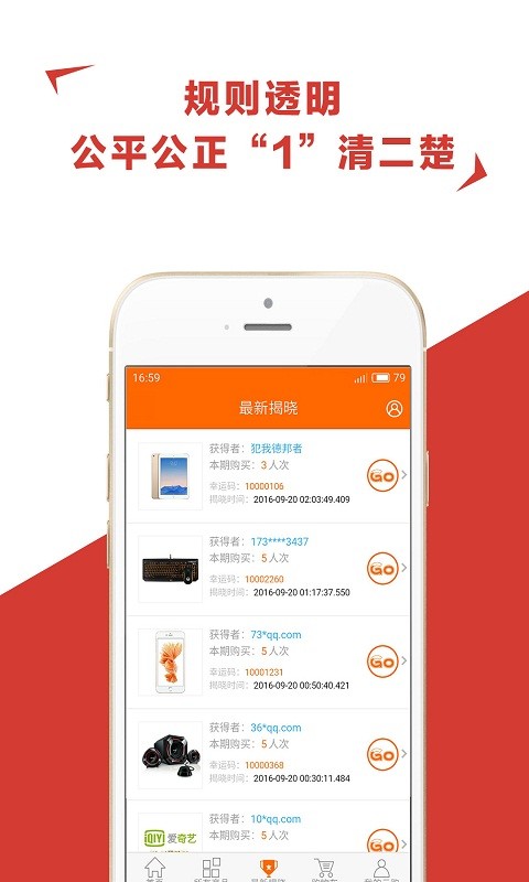 天天爱Go,是一家众筹购物平台。 一元奇迹,每天无时无刻的发生。 我们的理念:给你一个体验时尚的生活! 【教你怎么玩】 将一件商品总需要人次分成若干个小幸运号,当参与人数达到商品的总需要人次时,我们会公平公正的用一个固定公式算出一个幸运者,即幸运者可获得这件商品。幸运号码越多,获得商品的几率就更大哦!
