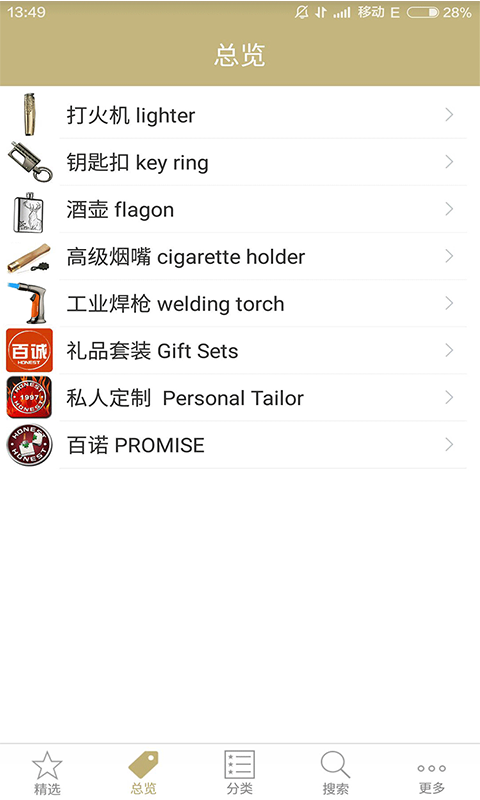 浙江百诚烟具有限公司创建于1997年,专业从事于金属打火机,精品钥匙扣,烟嘴,不锈钢酒壶,礼品套装等生产开发与销售。