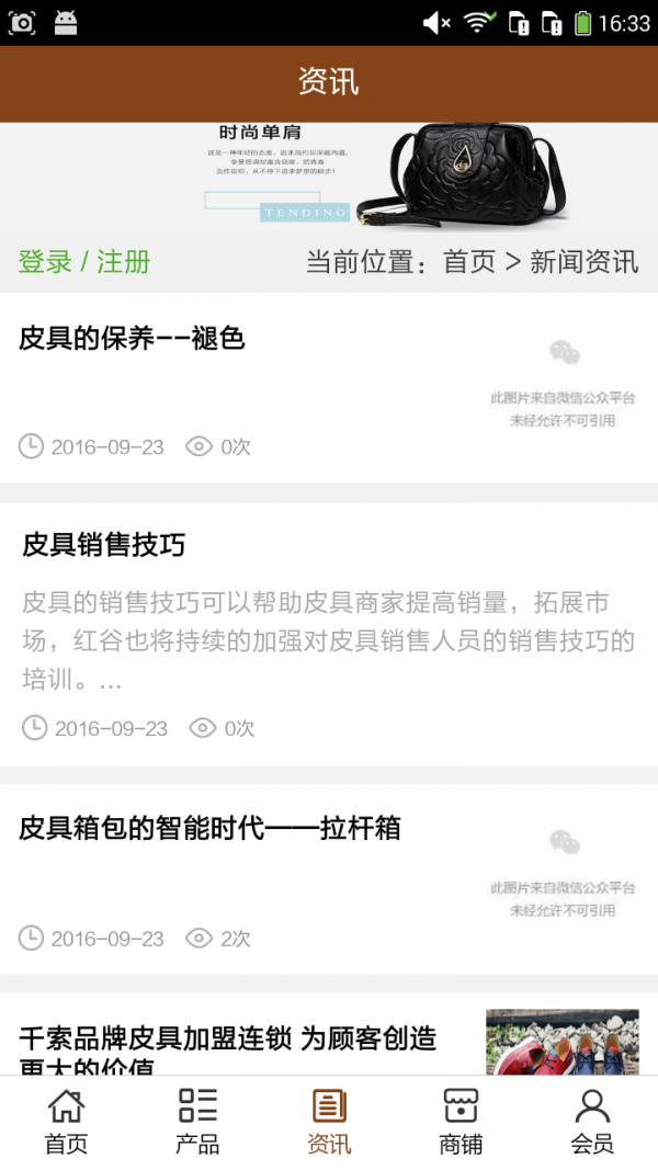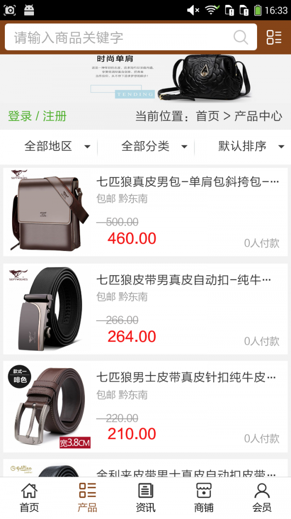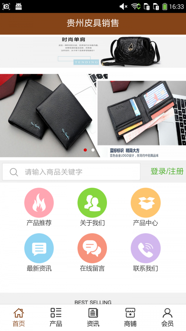 贵州皮具销售app不仅具备购物、查询订单、搜索商品、行业资讯和产品评价等常用功能,而且还实现了手机版特有的会员注册登录、广告位、招商开店等功能。目标是整合当地品牌商、生产商、经销商,为商家和消费者之间提供一站式解决案。欢迎下载使用!