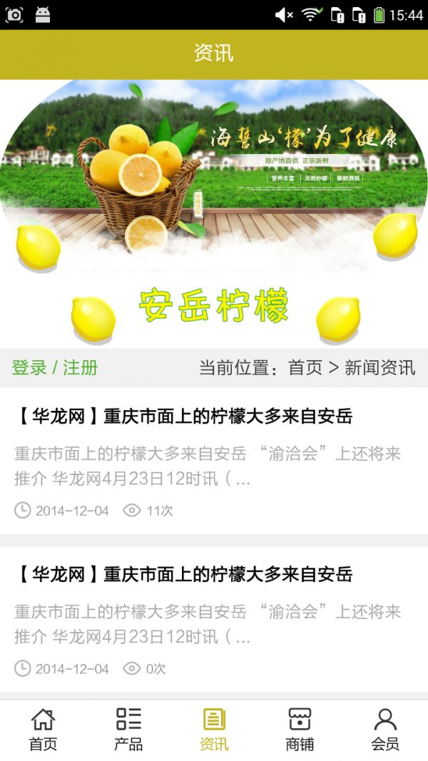 安岳柠檬app不仅具备购物、查询订单、搜索商品、行业资讯和产品评价等常用功能,而且还实现了手机版特有的会员注册登录、广告位、招商开店等功能。目标是整合当地品牌商、生产商、经销商,为商家和消费者之间提供一站式解决案。欢迎下载使用!