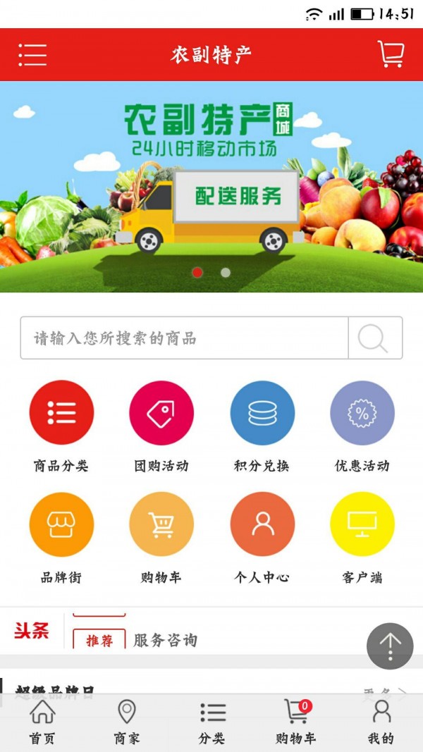 农副特产是一款实用信息平台,集商城、品牌街、积分兑换、优惠活动团购活动和热卖等功能于一体,真实、高效地让您生活更简单!农副特产是以企业和个人带来商机为出发点,合作会员还可以通过供求商机来展示自己的特色产品,拓展移动营销渠道,随时随地把握移动互联网商机。