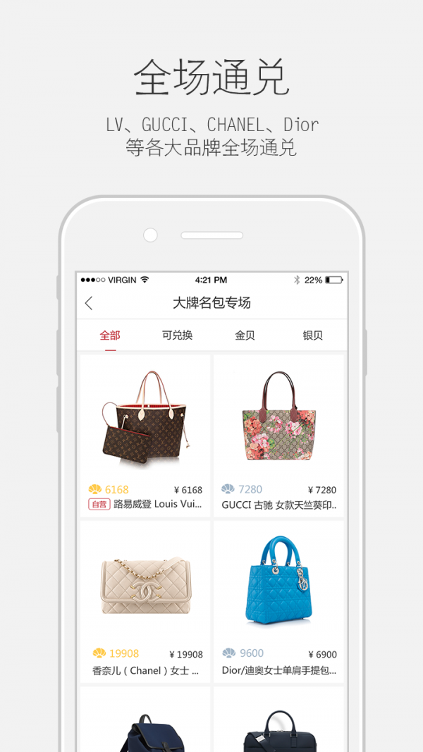 2、消费积分全场通兑:LV、GUCCI、CHANEL、Dior等各大品牌全场通兑,积分免费兑名包;